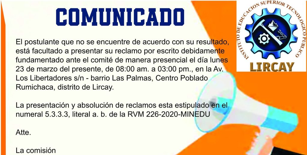 - Licenciamiento Institucional y Cierre de Brechas: Nuestra prioridad absoluta es alcanzar el licenciamiento ante el MINEDU. Para ello, gestionamos con urgencia la elaboración del expediente técnico del proyecto CUI N° 2712237. No descansaremos hasta que el IESTP Lircay cuente con la infraestructura y el equipamiento de vanguardia que nuestros estudiantes de Explotación Minera, Mecatrónica Automotriz y Mecánica de Producción Industrial merecen.